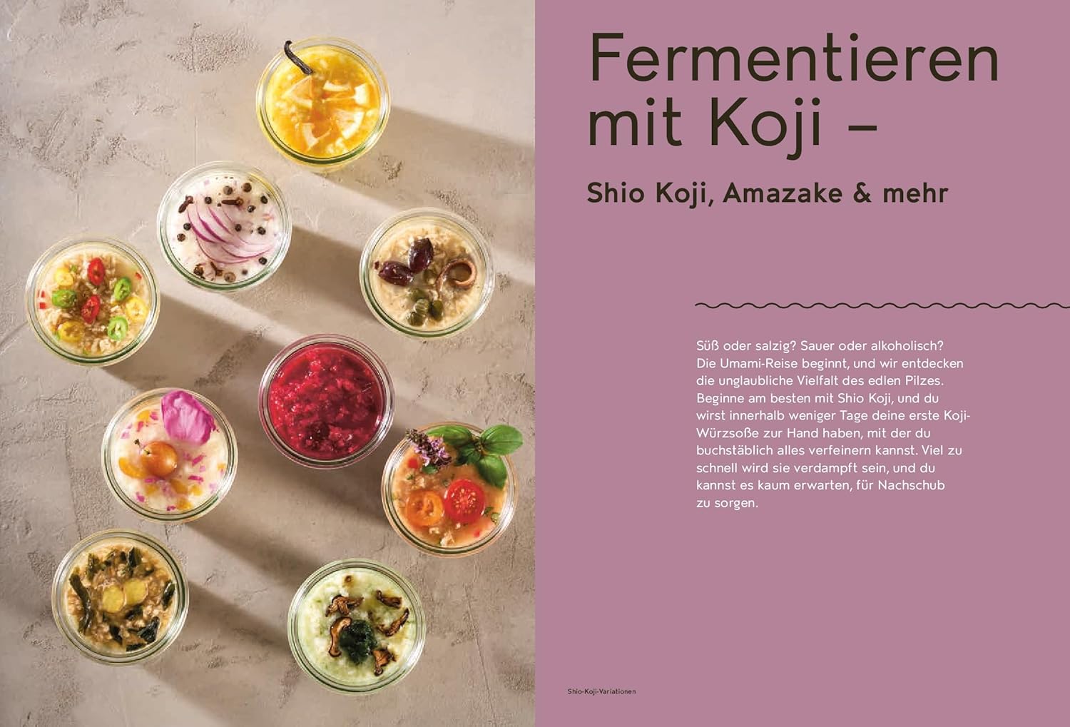 Sibylle Hunger führt in ausführlichen Schritt-für-Schritt-Anleitungen in die Herstellung der wichtigsten Koji Fermente in der eigenen Küche ein und hält zahlreiche Ideen und Tipps bereit - auch zur Verwertung von Rüstabfällen und Resten. Im Rezeptteil wird mit Koji fermentiert: Getreide, Hülsenfrüchte, Gemüse, Früchte, Fleisch und Fisch sowie japanische Spezialitäten wie Shio Koji, Miso, Shoyu, Amazake, Mirin und Natto – auf traditionelle Art hergestellt, in modernen Variationen und mit heimischen Zutaten zubereitet. Eine Einladung in die Welt der Koji-Magie, die Ihre Küche zu jedem Anlass und jeder Tageszeit bereichert.